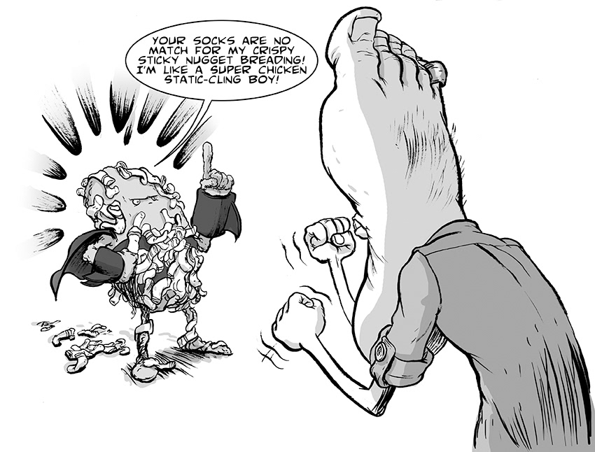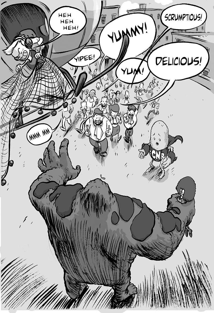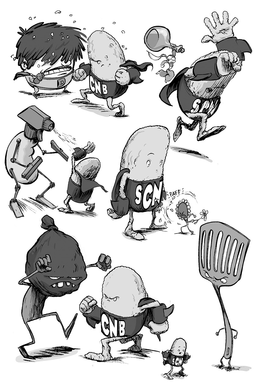 I got to do the interiors for the last two books in the "Super Chicken Nugget Boy" series. I didn't get to do the covers, so I featured the interiors in a promotional piece that I used for the cover of this set.