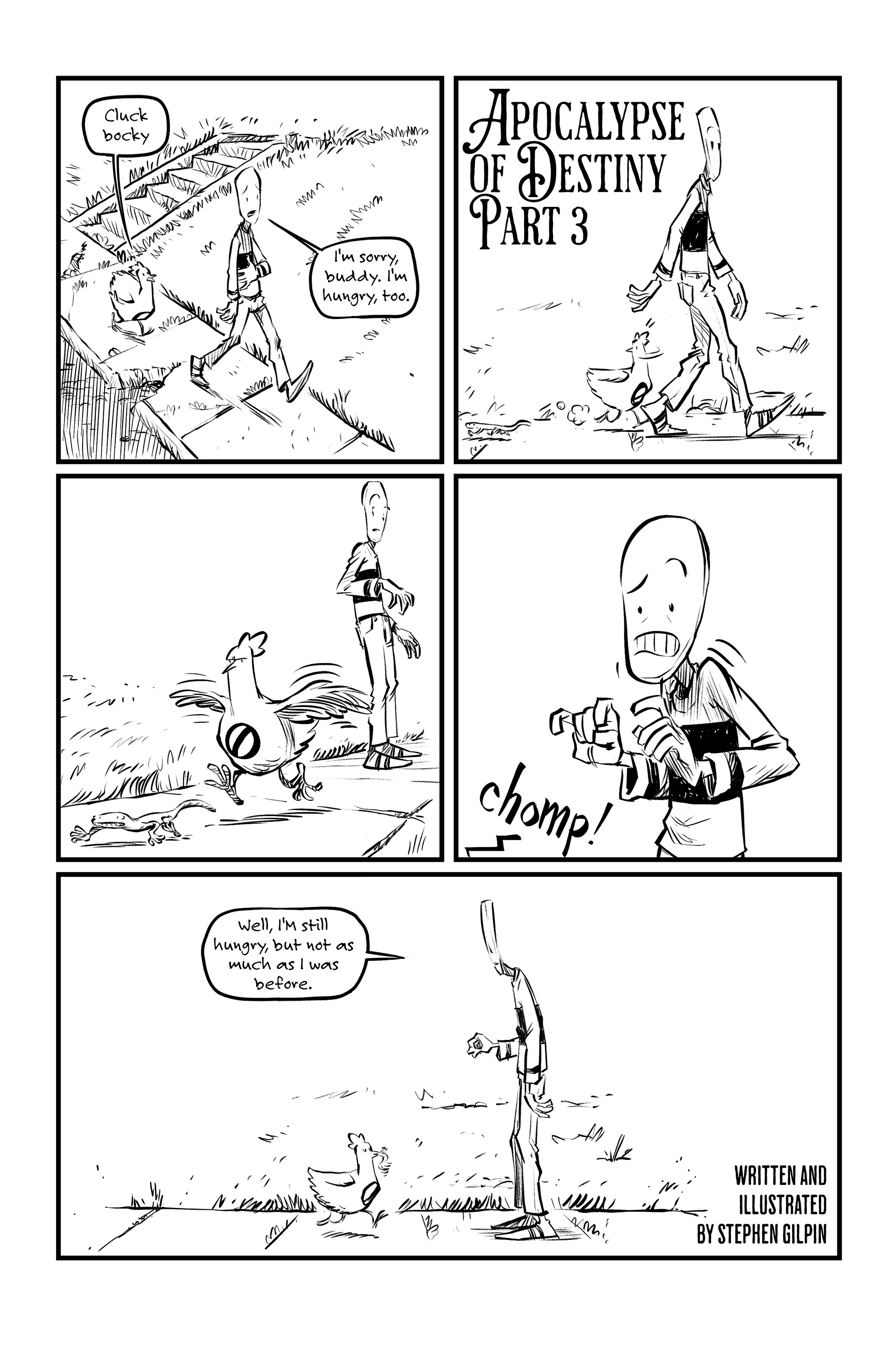 In which Deadpan Stan continues his search for the headless corpse, we meet the Phillips Brothers and Pancakehead finds a book in an outhouse.